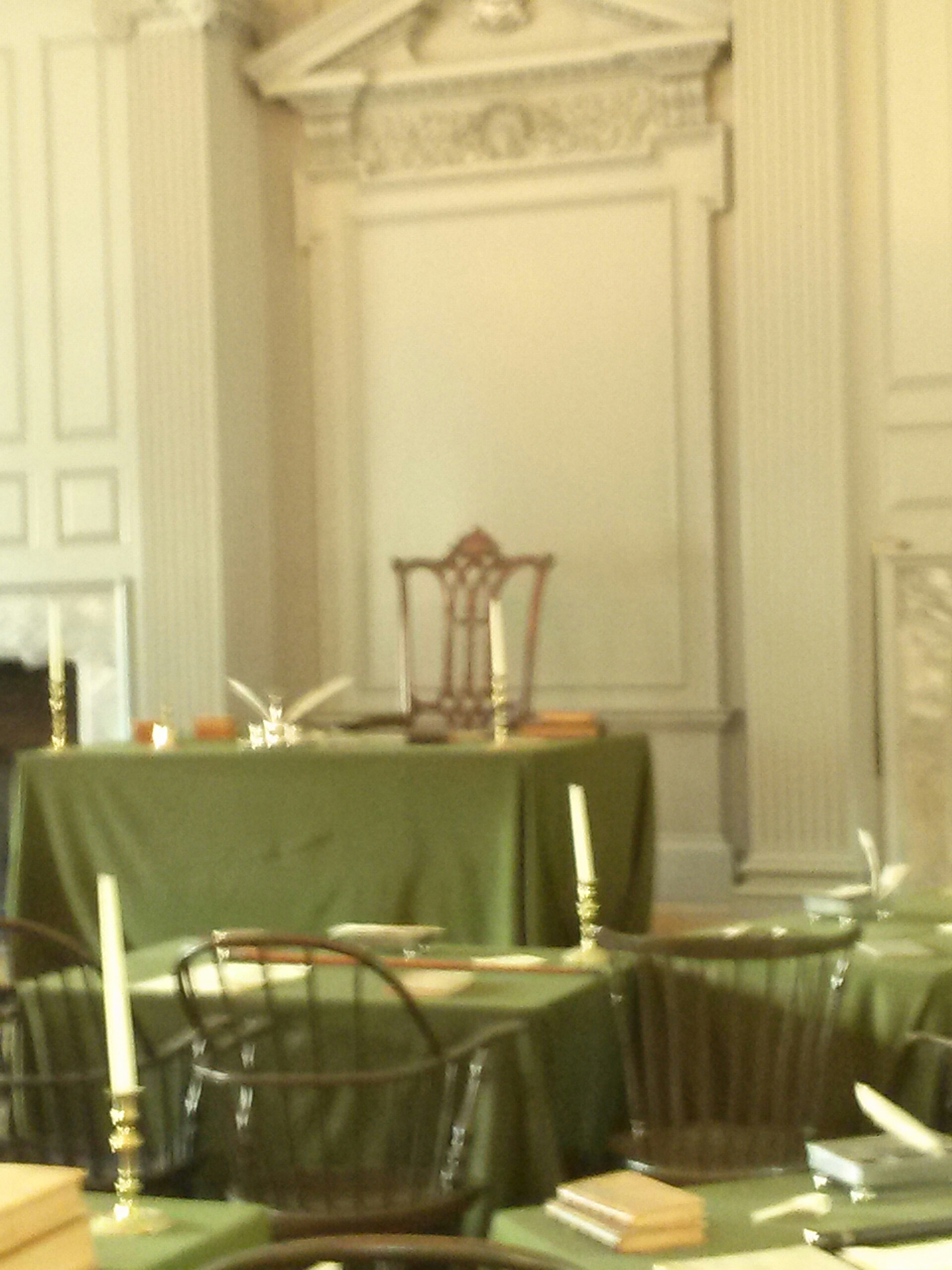Inside the Hall we saw the the chair George Washington sat in while they were writing the Constitution. This was the same place that the Declaration of Independence was signed eleven years later. This is what we saw when we went there.